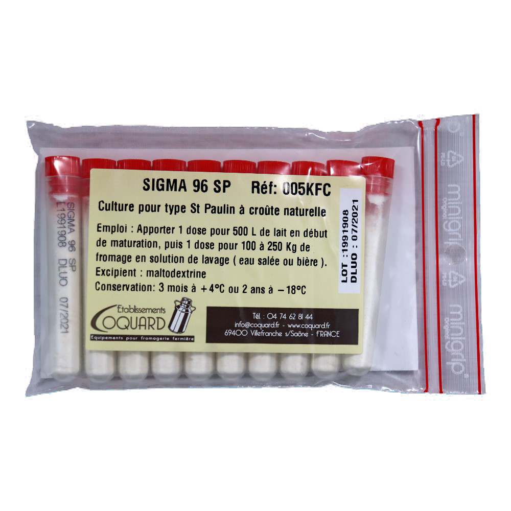 A Coquard Sigma 96 SP egy fagyasztva szárított (liofilizált) sajtkultúra, amelyet nagy tejmennyiséghez terveztek (250-500 liter). Ez a kultúra különösen alkalmas félkemény és kemény sajtok gyors és megbízható fermentációjára, biztosítva a teljes és egyenletes savanyodást, mely alapvető a jó minőségű sajt előállításához.