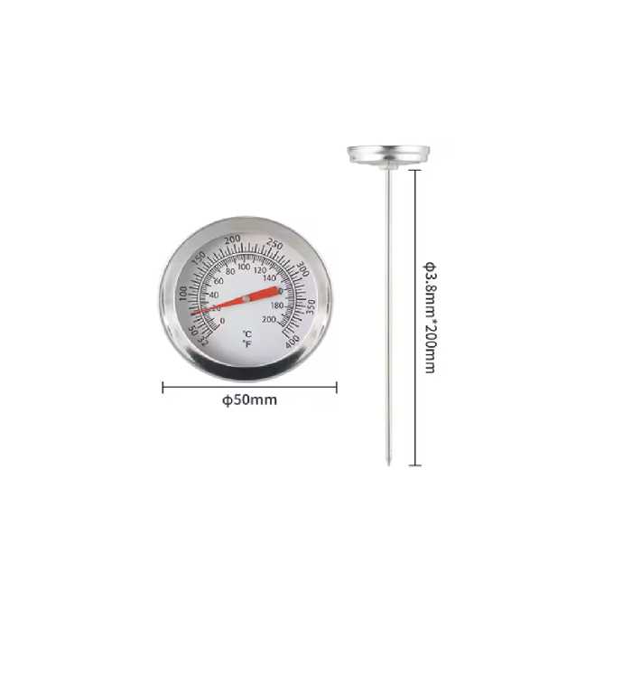 Rozsdamentes acélból készült, 0–200 °C / 32–400 °F mérési tartományú hőmérő megbízható megoldást kínál különféle ipari és háztartási felhasználásokhoz.
